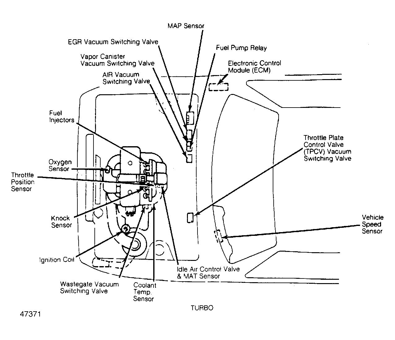 | Electronic Control Module (ECM) | On right side of dash, behind right kick panel. See Figure & 5. |