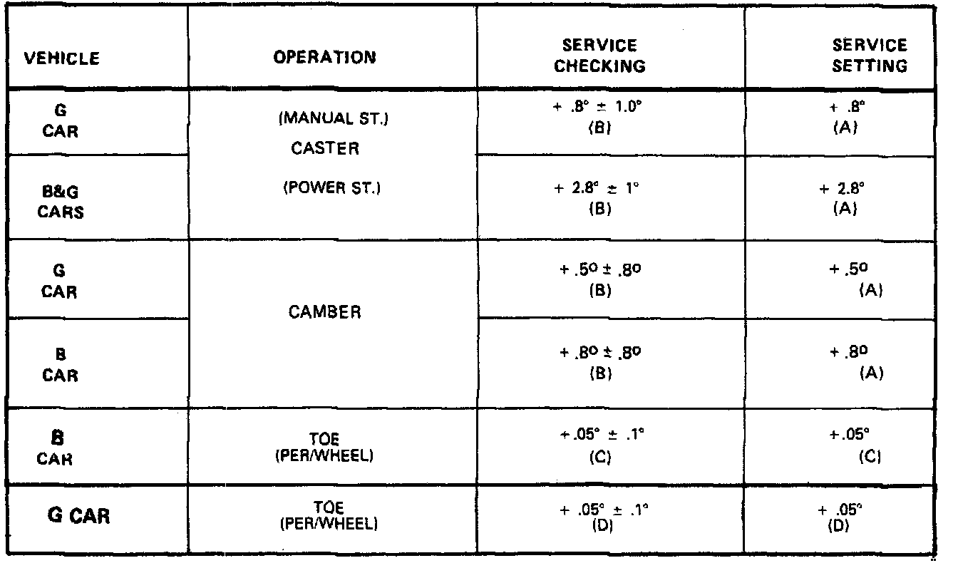Home >> Chevrolet >> 1988 >> Caprice V8-305 5.0L >> Repair and Diagnosis >> Specifications >> Mechanical Specifications >> Alignment >> Alignment Specifications