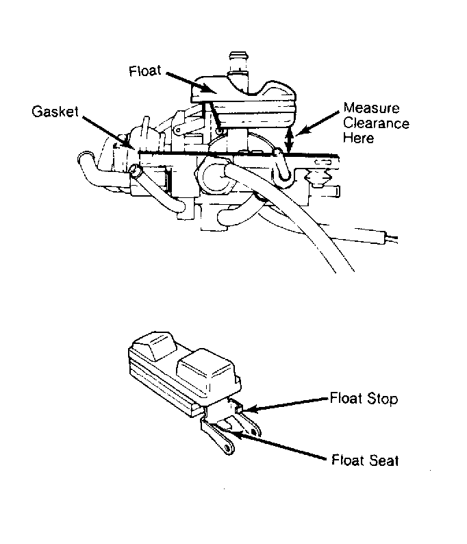 - Float clearance must be within specification. See the CARBURETOR ADJUSTMENT SPECIFICATIONS table. Bend float seat for adjustment.