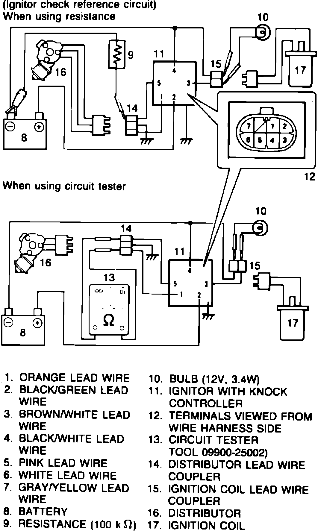 Fig. 8 Testing igniter w/knock controller. 1987 - 88 Models w/EFI & turbocharger: