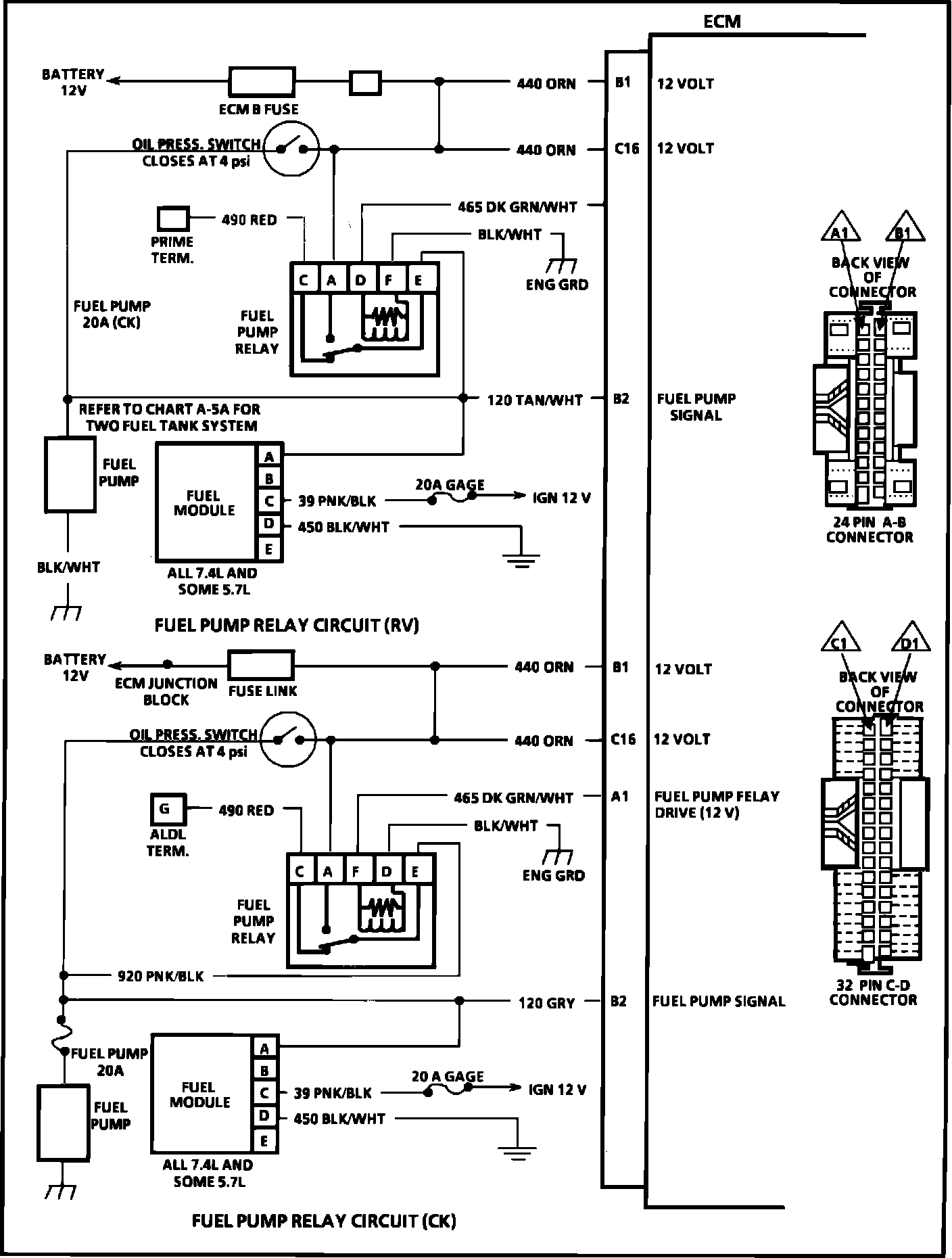A1 = FUEL PUMP RELAY DRIVE (12V).