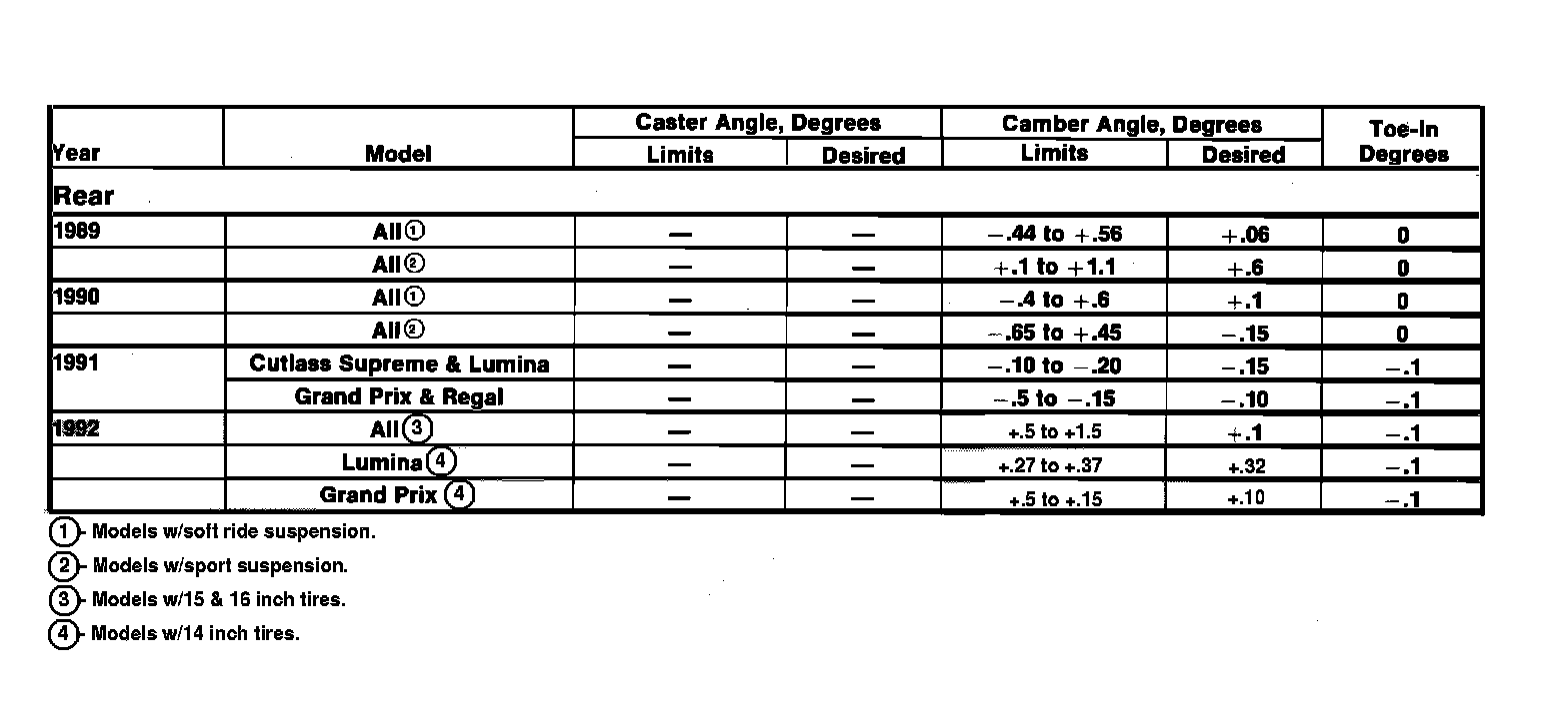 Rear Alignment Specifications