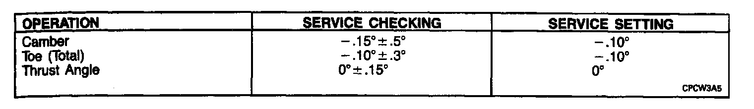 Rear Wheel Alignment Specifications: