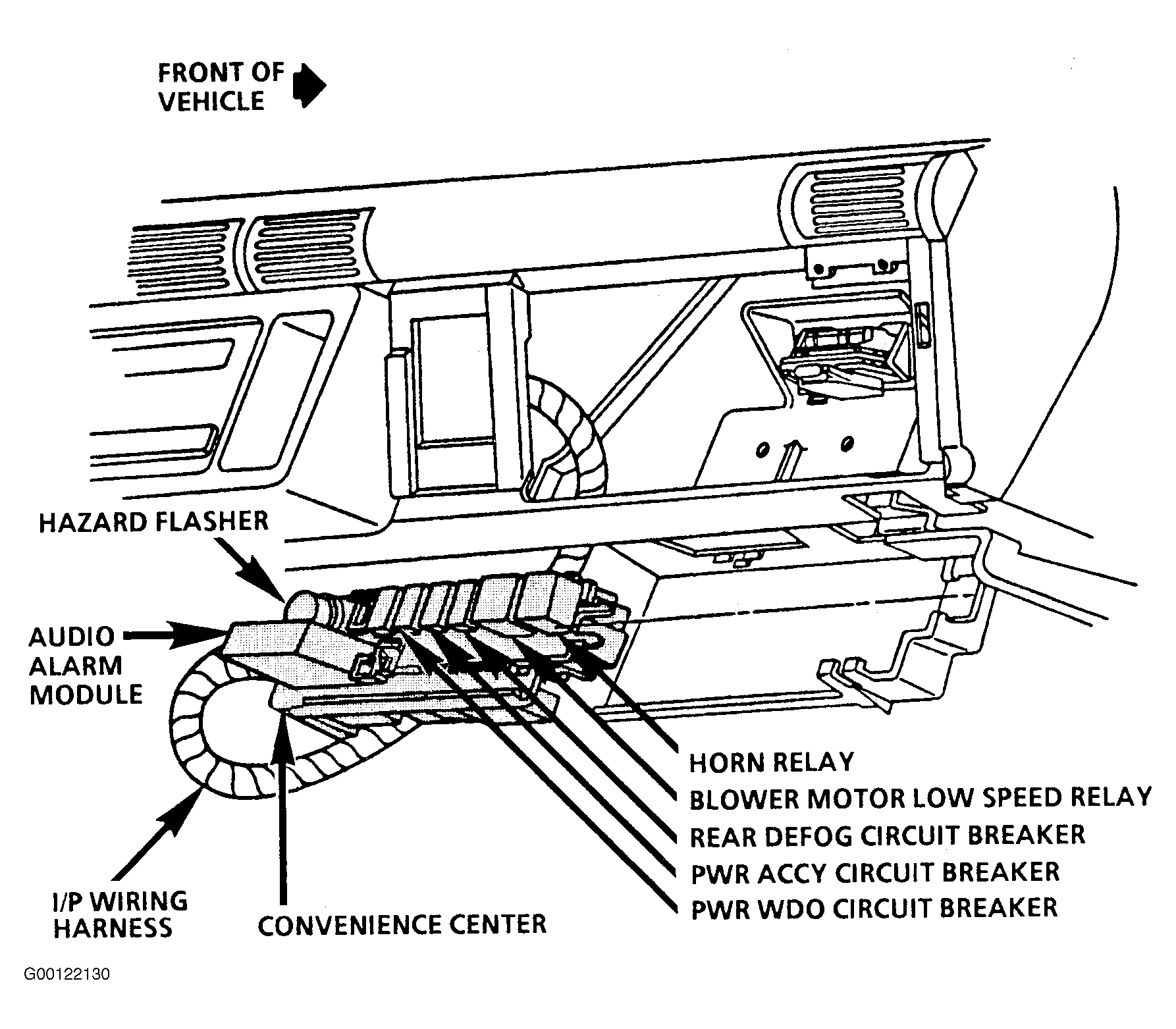 | Convenience Center | Below Right Side Instrument Panel. See Fig 1 . |