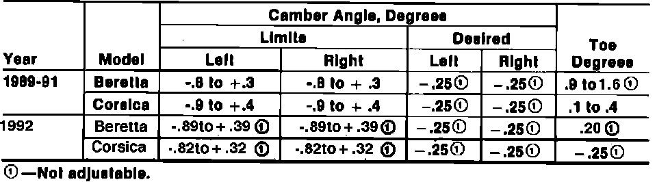 Rear Wheel Alignment Specifications: