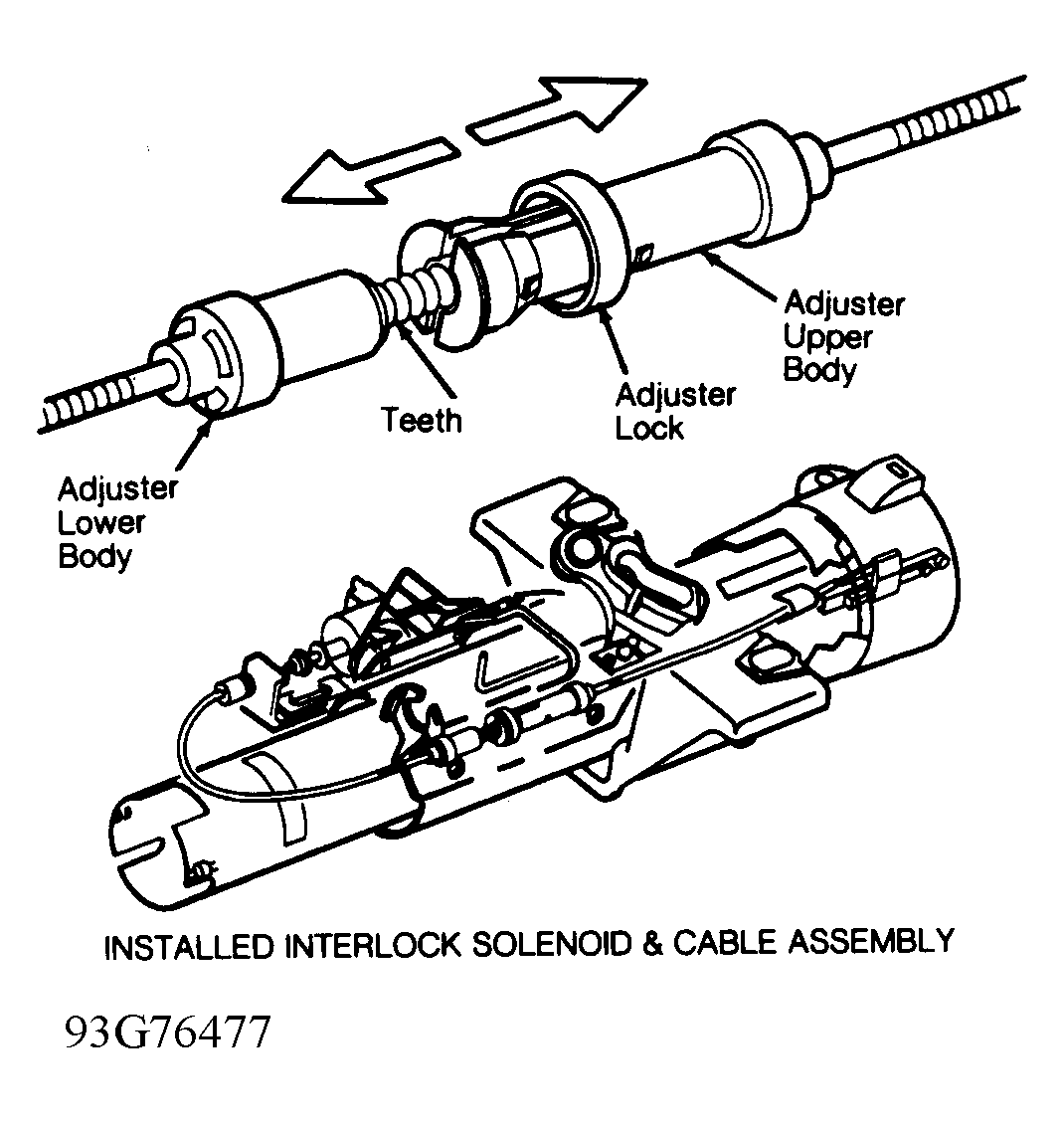 - To reassemble, reverse disassembly procedure. Lubricate adapter and bearing assembly with lithium grease before installation. If equipped, install gear shift interlock solenoid and cable assembly. Ensure first tooth of ignition actuator rack is positioned between first and second tooth of actuator sector. See Fig 4 . With actuator rack fully inserted, block tooth of actuator sector will be positioned within block tooth of actuator rack.