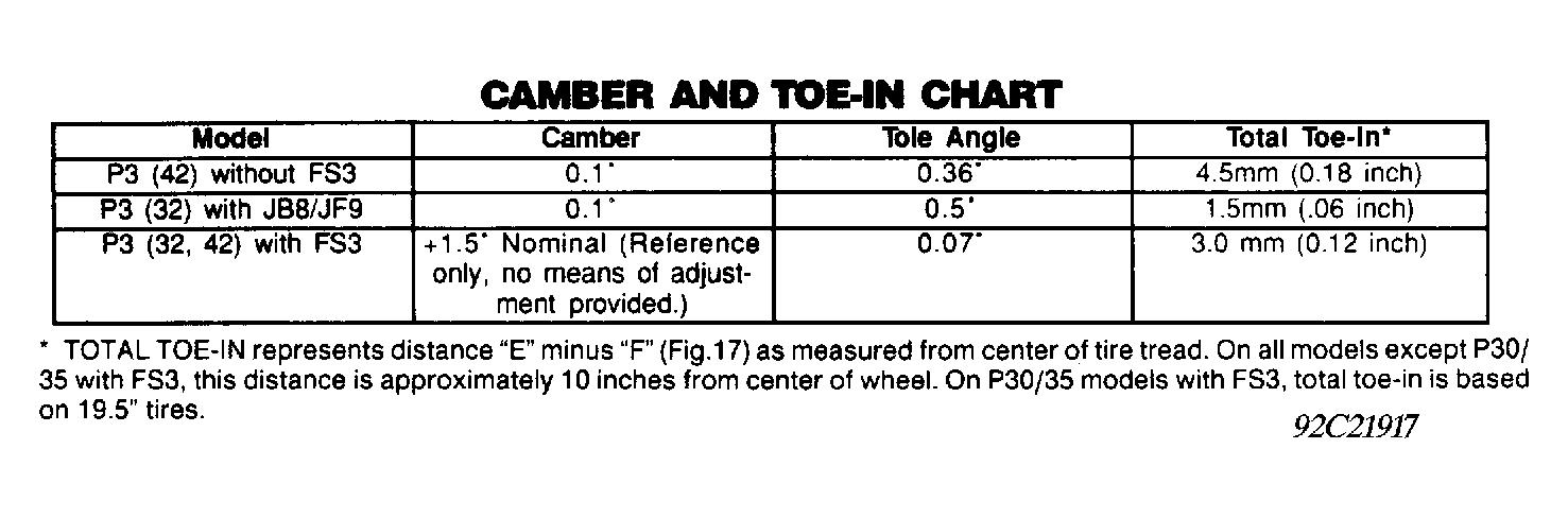 ALIGNMENT SPECIFICATIONS ("G" SERIES VAN)