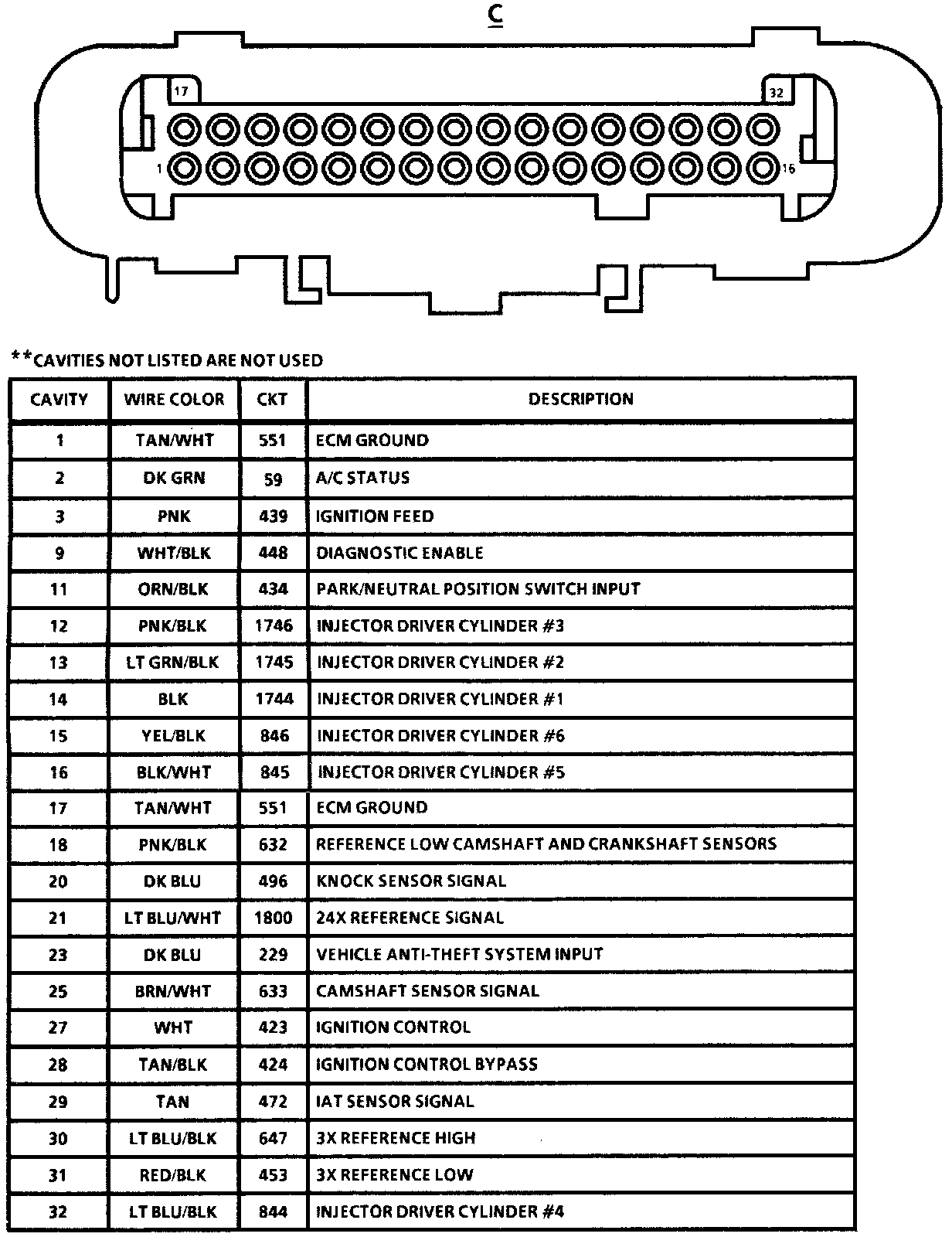 Sequential Fuel Injection V6 VIN S: Engine Control Module, Connector C:
