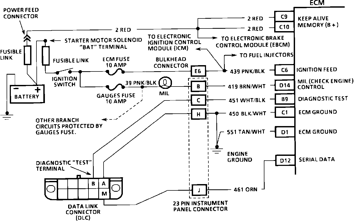 3. This test checks the ability of the ECM of control the MIL (CHECK ENGINE). With the diagnostic terminal grounded, the MIL should flash a DTC 12 three times, followed by any Diagnostic Trouble Code (DTC) stored in memory. Depending upon the type of ECM, an EEPROM error may result in the inability to flash DTC 12