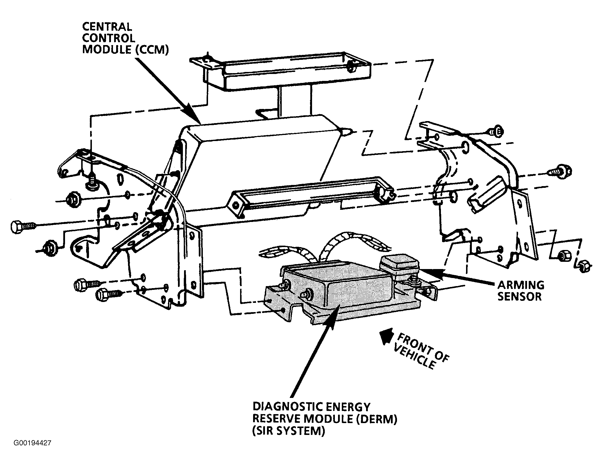| Diagnostic Energy Reserve Module (DERM) | Behind center of instrument panel carrier. See Fig 1 . |