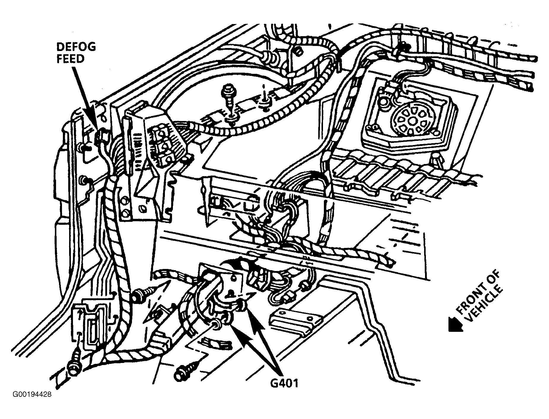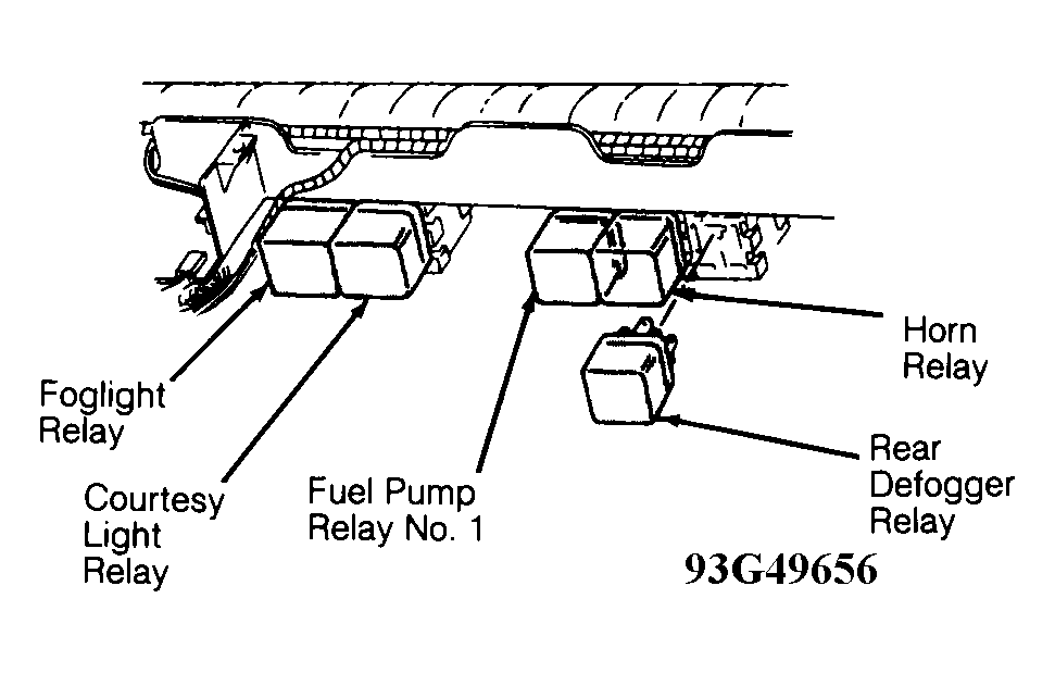 | Defogger Relay | Behind right side of instrument panel. See Fig 2 . |