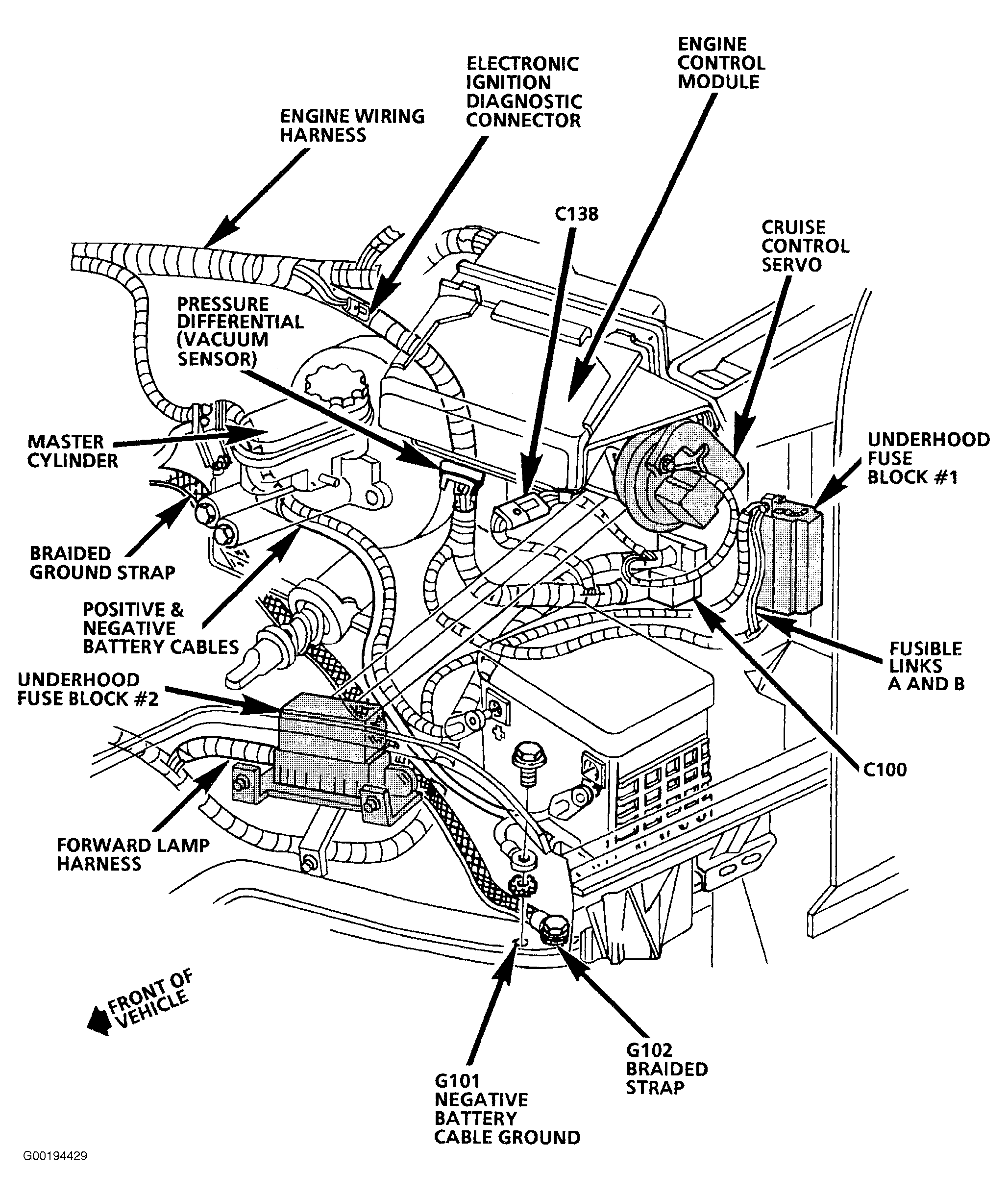 | Electronic Control Module (ECM) | Left side of engine compartment. See Fig 6 . |