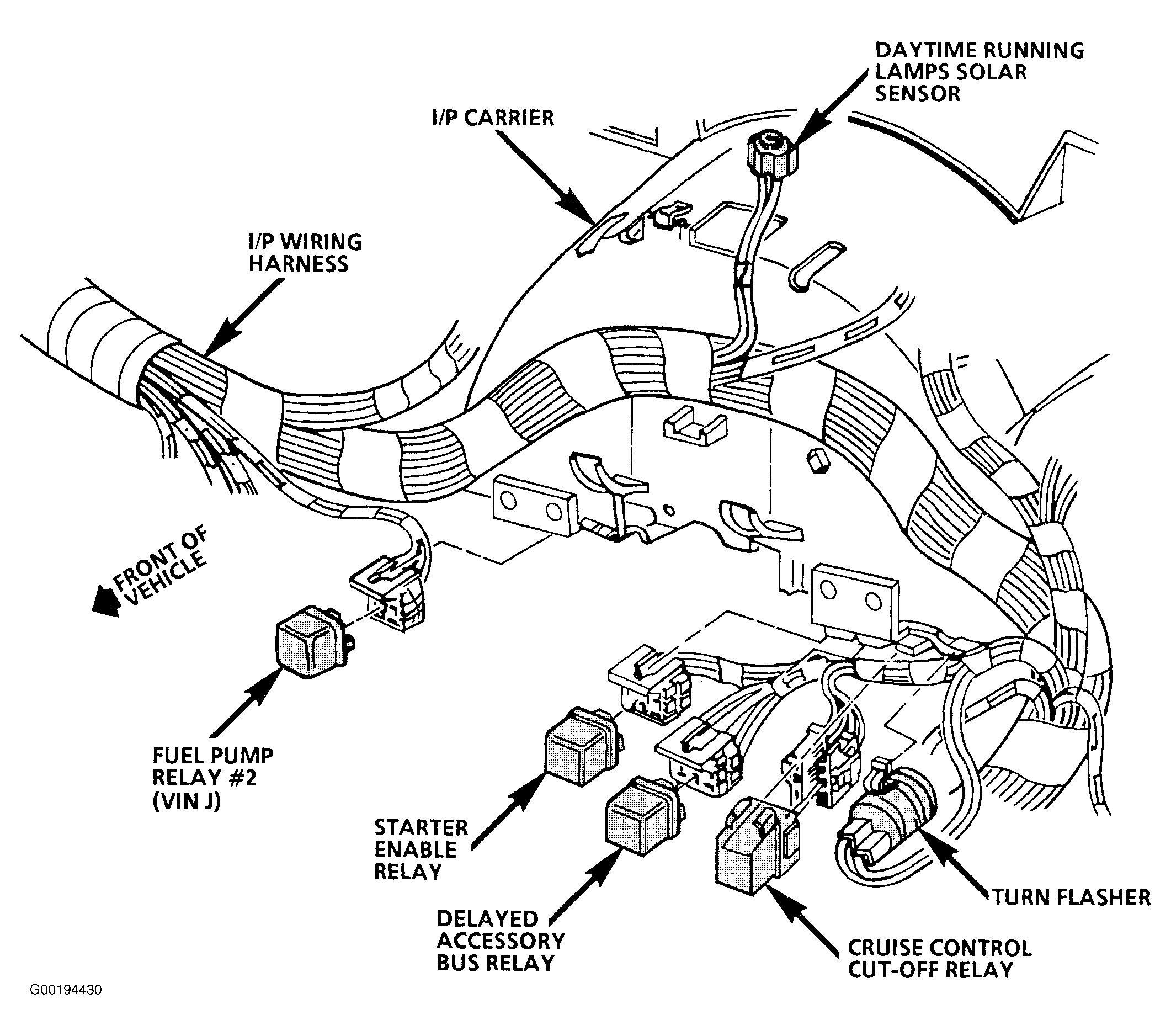 | Starter Enable Relay | Behind left side of instrument panel. See Fig 3 . |