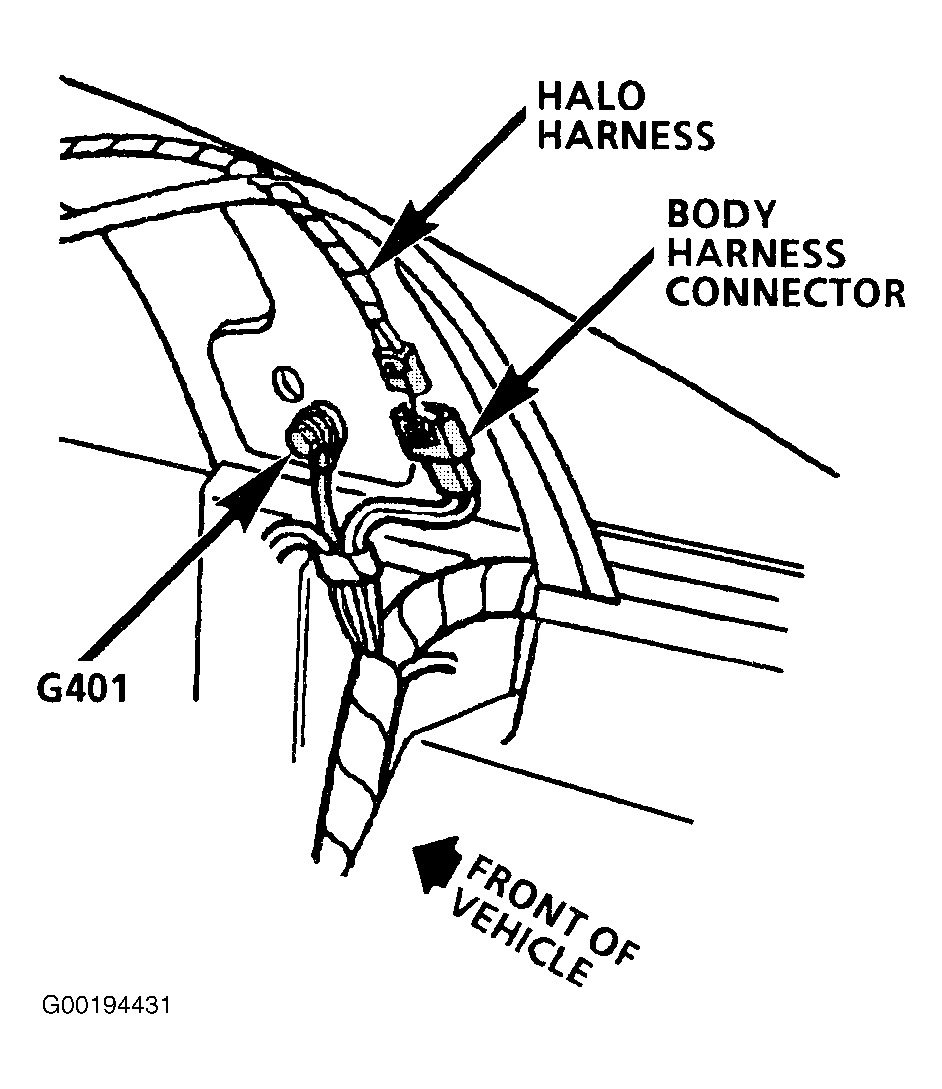 | Ground G401(Coupe) | On B pillar, behind trim panel. See Fig 10 . |