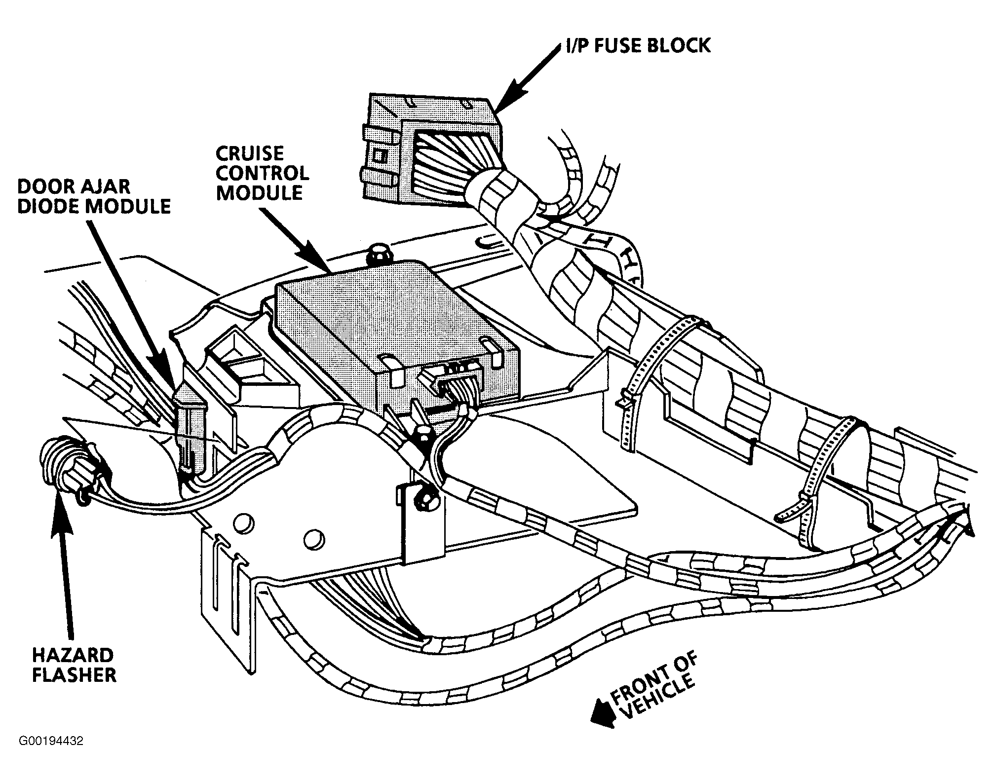 | Diode Module (Door Ajar) | Behind right side of instrument panel. See Fig 4 . |