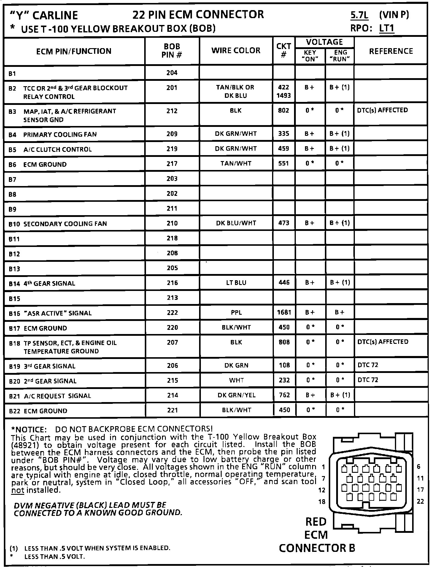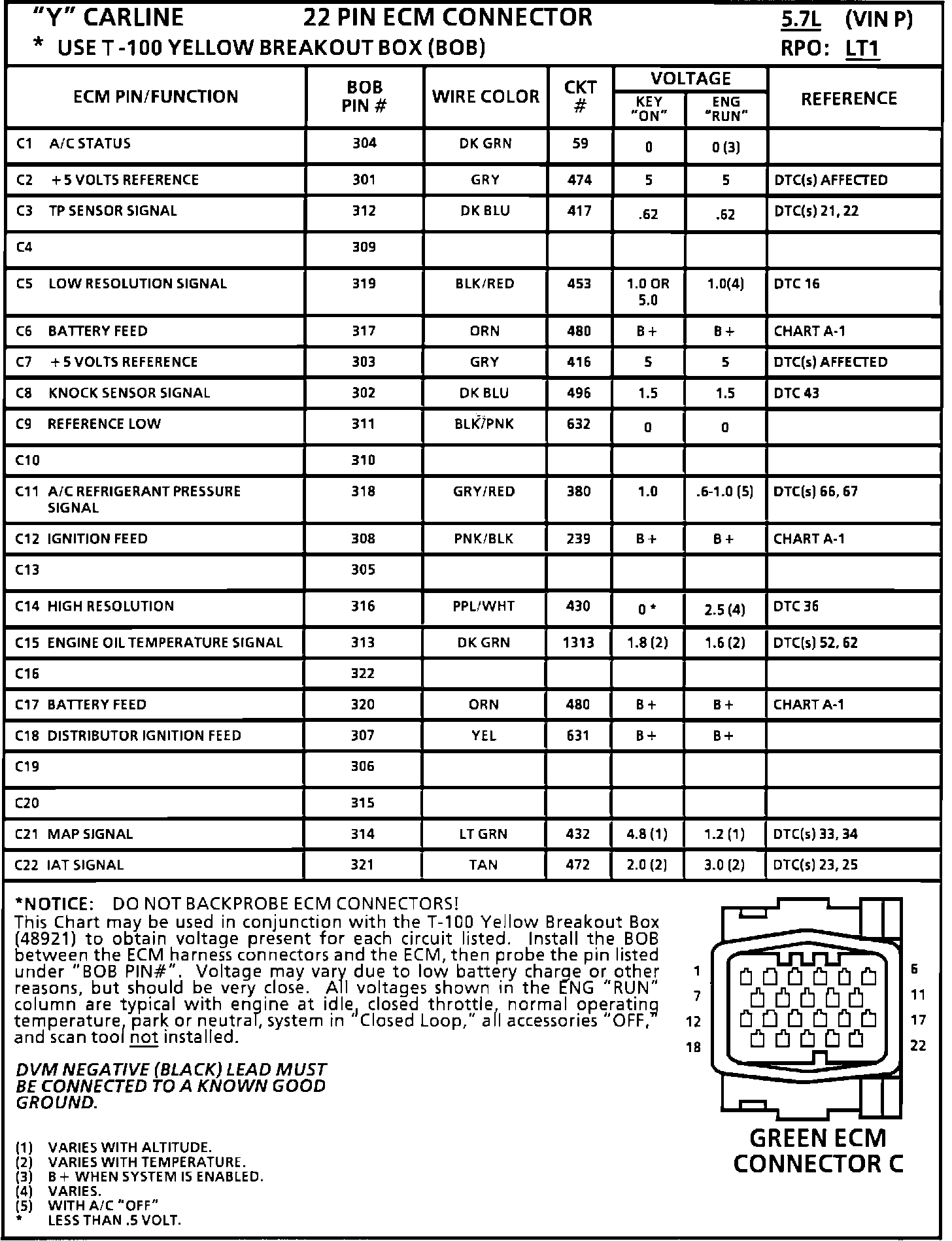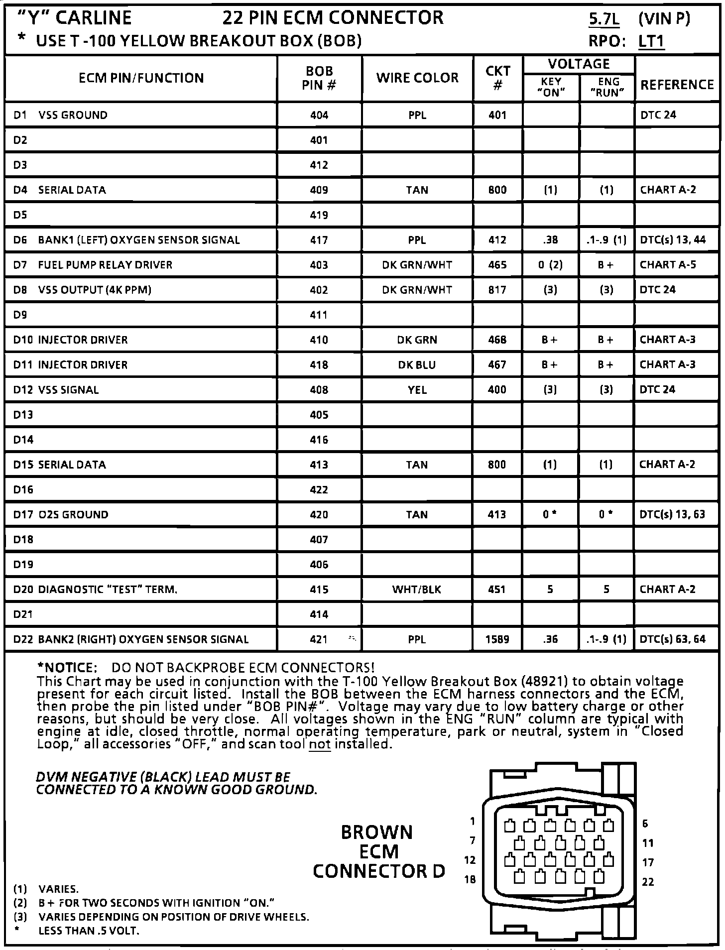 ECM Pin Voltage Chart: