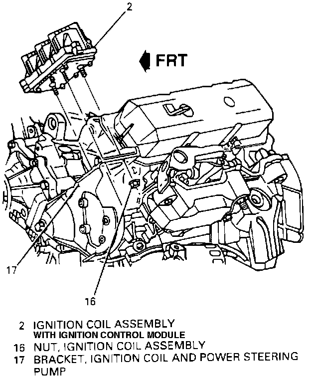 The ignition control module and coil assembly is mounted to the left cylinder head.