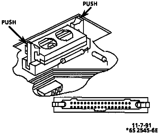 Gently press down on the ends of the EPROM until the clips are against the sides of the EPROM. DO NOT press on the ends of the EPROM until the clips snap into place or the controller circuit board and/or clips may be damaged. Press inward on the clips until they snap into place.