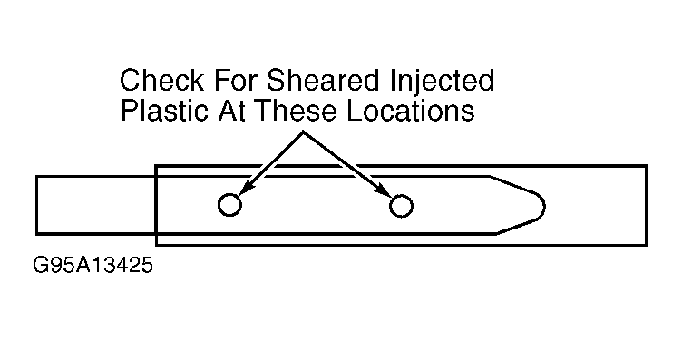 Steering column is designed to collapse if impacted during a collision. Steering shaft and column jacket are both 2-piece units, which are internally injected with plastic. The plastic protrudes from holes in each unit, keeping the 2 separate pieces rigidly together as one unit. See Figure and Figure. If the column or steering wheel is force-fully impacted, the plastic pieces break off, allowing the column and shaft to collapse.