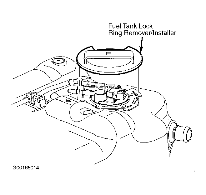 If installing a new fuel pump, install fuel level sending unit onto new fuel pump. Insert new primary fuel pump module with level sender and new fuel pump-to-tank seal. Ensure orientation tabs are aligned. Using Fuel Tank Lock Ring Remover/Installer (SA9156E), install fuel pump lock ring. See Fig 2 . Connect fuel lines to fuel tank. Ensure new fuel line quick-connect retainers are used on fuel lines. Connect wiring harness to primary fuel pump module. Install fuel tank. See FUEL TANK .