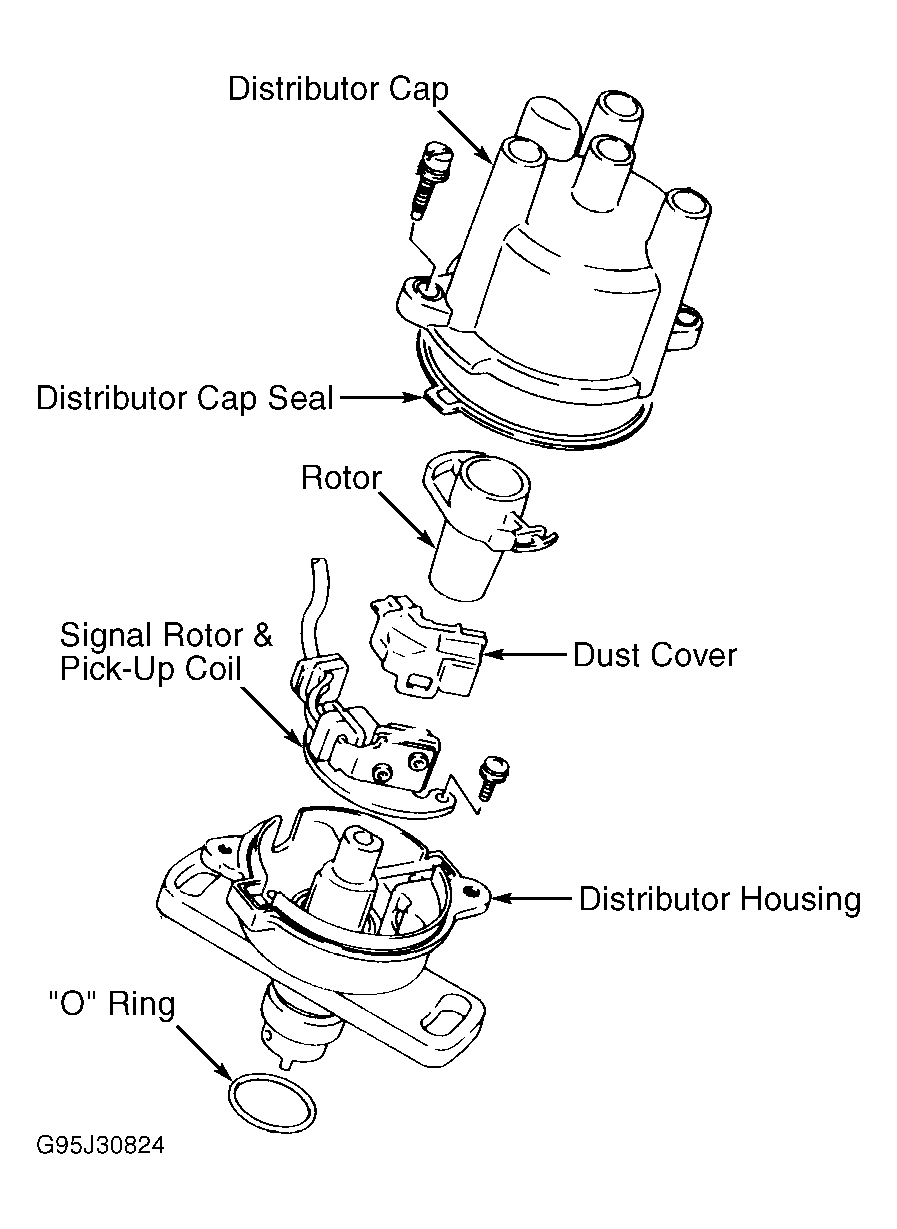 Camshaft position sensor is located in distributor housing and may also be referred to as a pick-up coil. See Figure. Adjust signal rotor air gap to .008-.016" (0.2-0.4 mm) by moving camshaft position sensor in relation to signal rotor.
