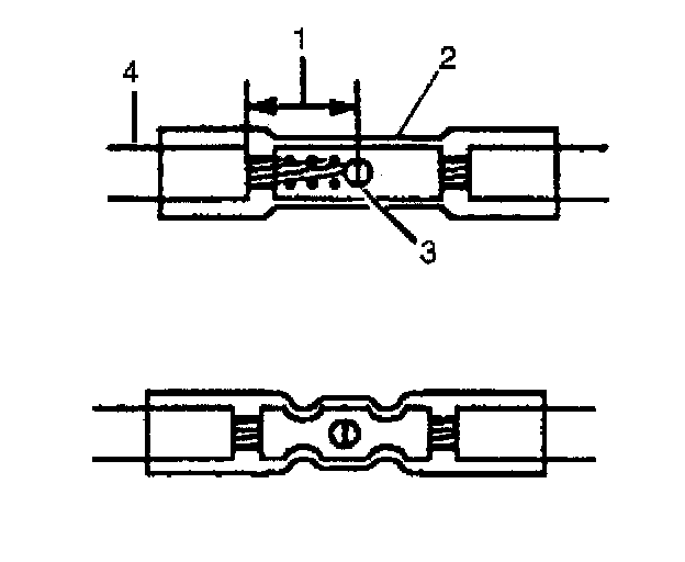 9. Insert the wires into the splice sleeve until the wire hits the barrel stop. The splice sleeve has a stop in the middle of the barrel in order to prevent the wire from passing through the splice (3).