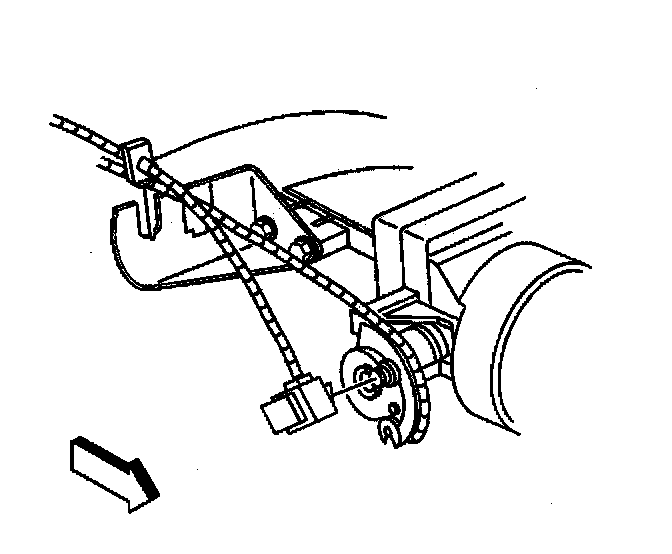 4. Pull the throttle body end of the cable until cable is taut, continue to hold while performing the following: