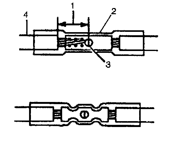 9. Insert the wires into the splice sleeve until the wire hits the barrel stop. The splice sleeve has a stop in the middle of the barrel in order to prevent the wire from passing through the splice (3).