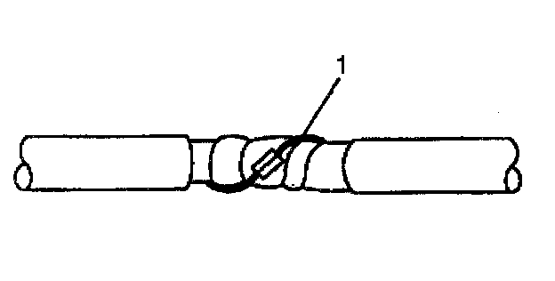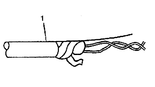 1. Remove the outer jacket (1). Use care not to cut into the drain wire of the MYLAR tape.