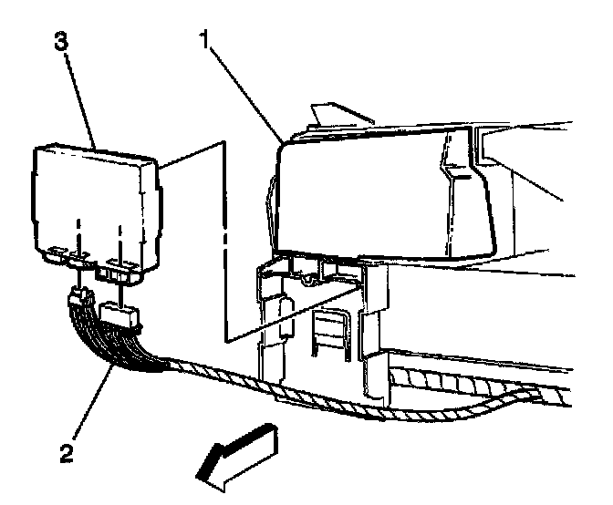 3. Unsnap the Body Control Module (BCM) (3) from the heating, ventilation and air conditioning (HVAC) duct (1).