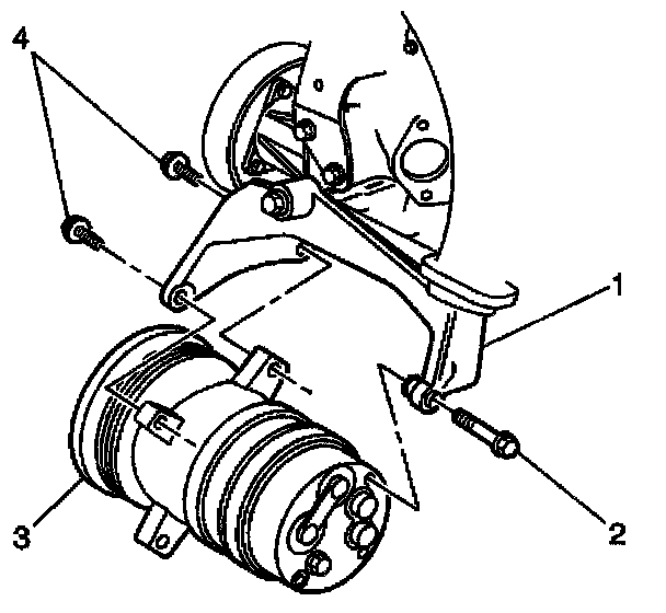 1. Install the compressor mounting bracket (1).