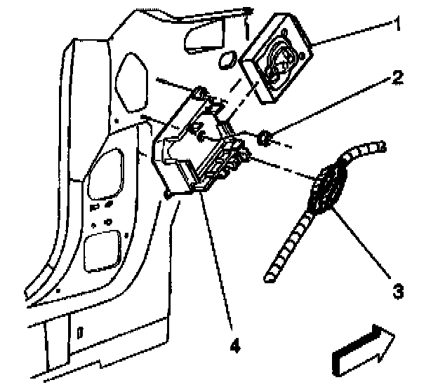 2. Install the BCM wire harness retainer (3) to the BCM bracket (4).