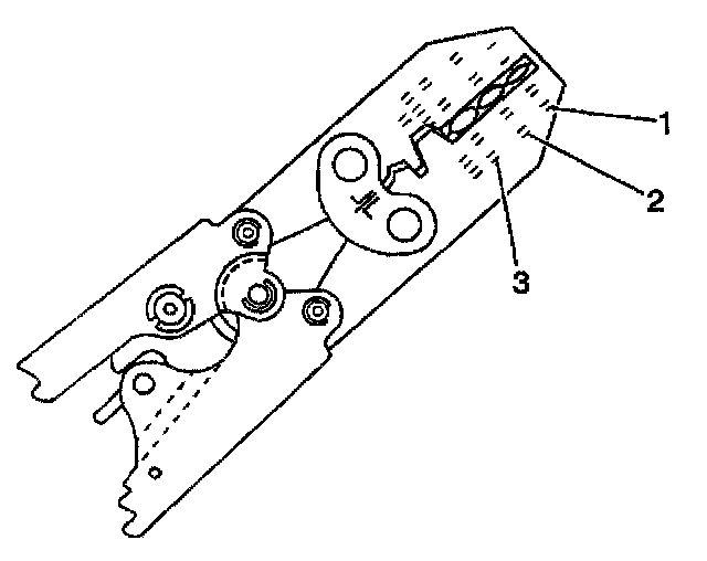6. Place the splice sleeve in the nest. Ensure that the crimp falls midway between the end of the barrel and the stop. The sleeve has a stop (3) in the middle of the barrel (2) in order to prevent the wire (1) from going further. Close the hand crimper handles slightly in order to firmly hold the splice sleeve in the proper nest.