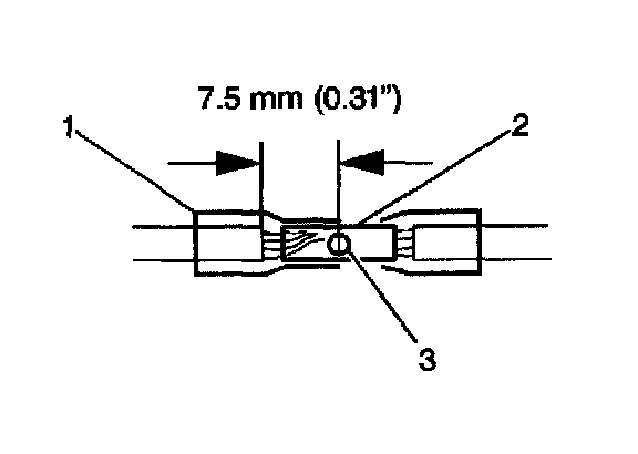 Adjust splice locations so that each splice is at least 40 mm (1.5 in) away from the other splices, harness branches, or connectors.
