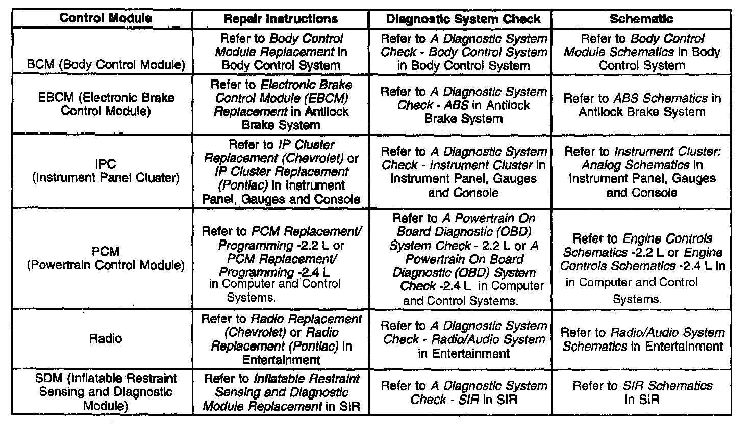 Control Module References