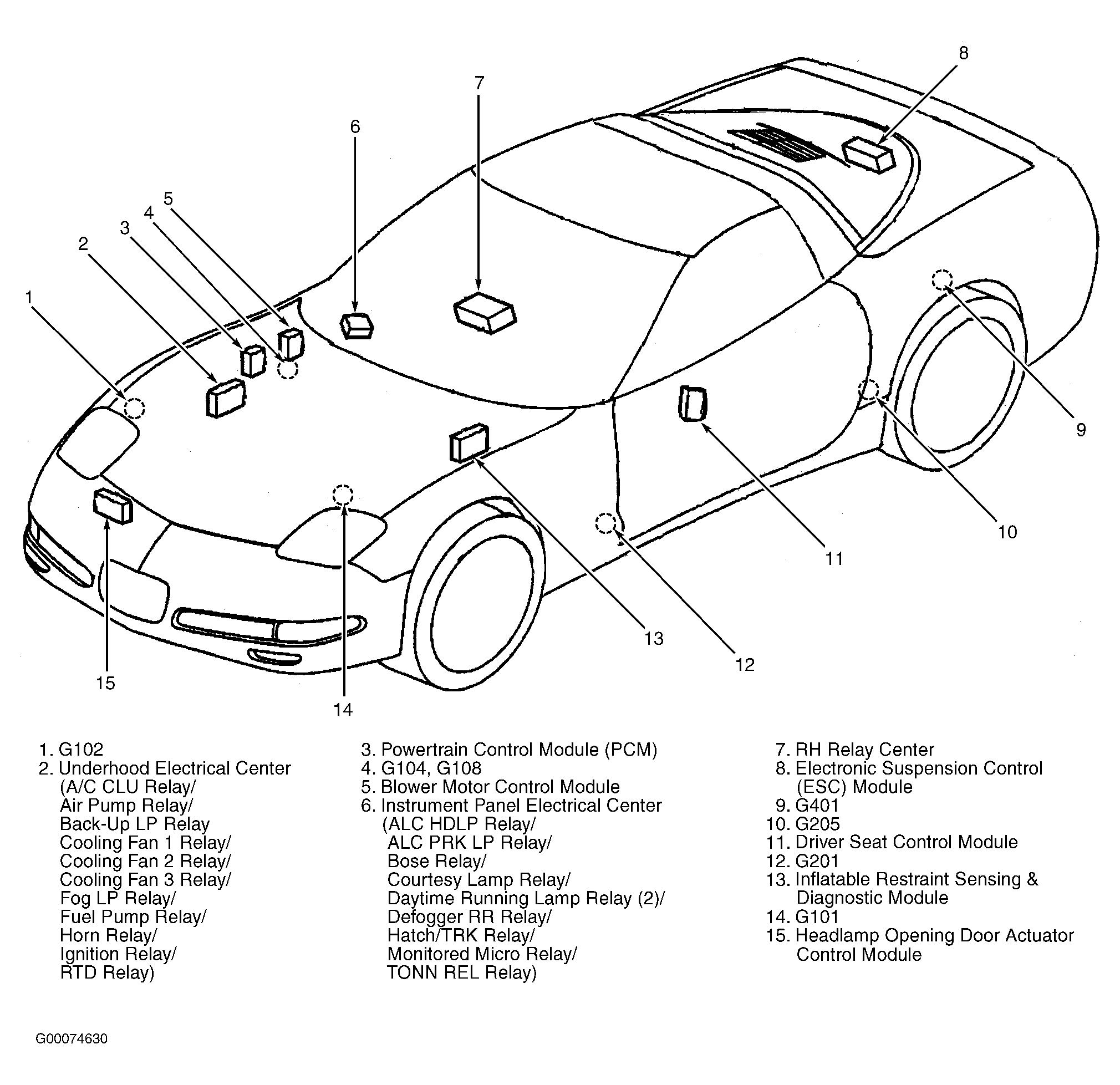 | RH Relay Center | Under center of right seat. See Figure . |