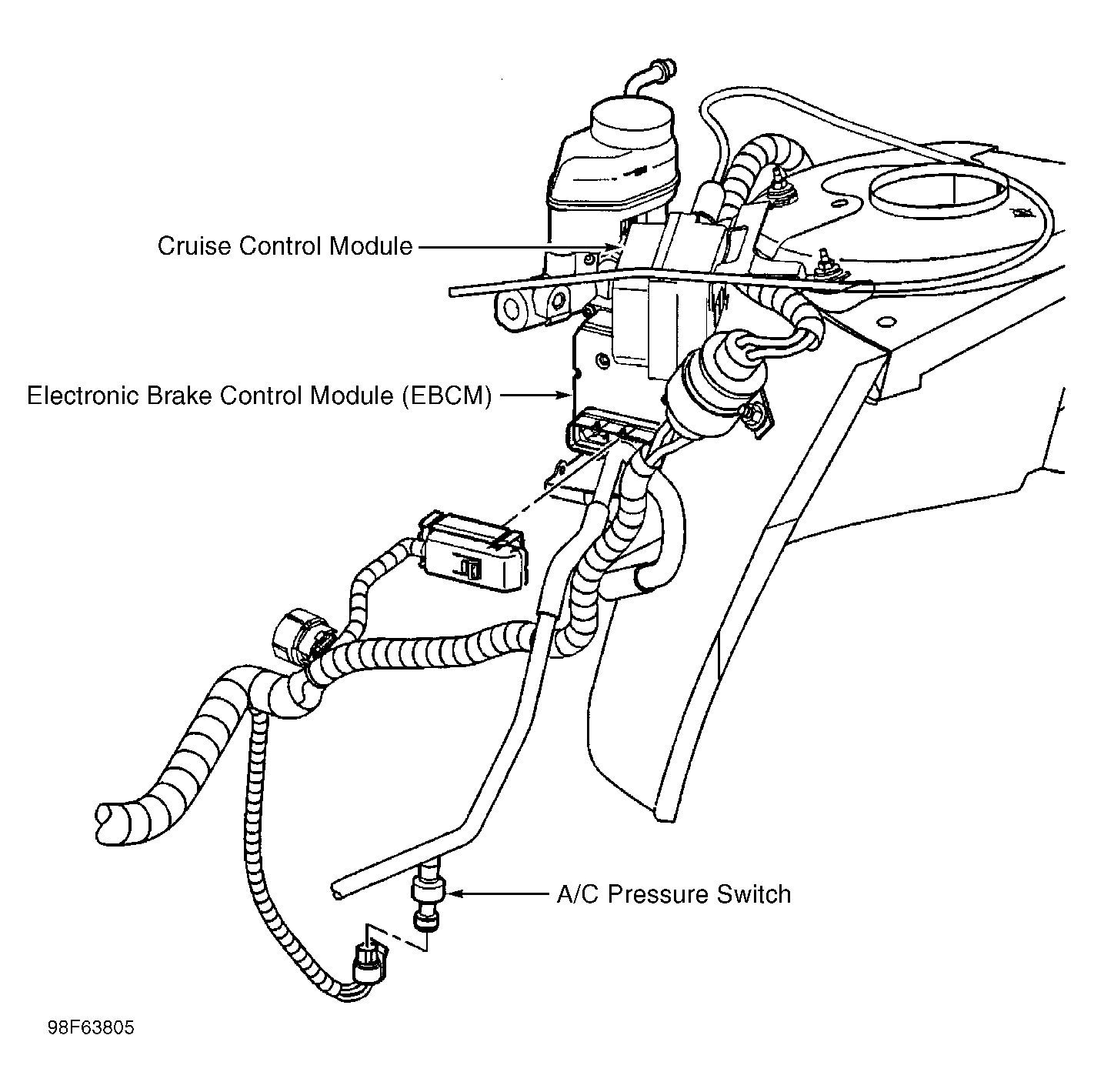 | Electronic Brake Control Module (EBCM) | In left rear of engine compartment. See Figure. |