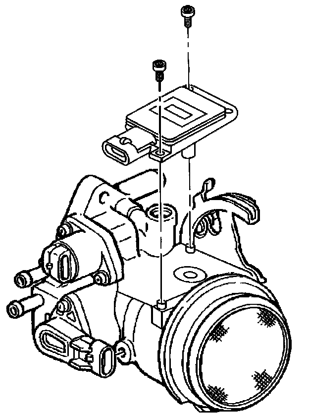 The MAF sensor on this engine is attached to the throttle body assembly.Removal Procedure