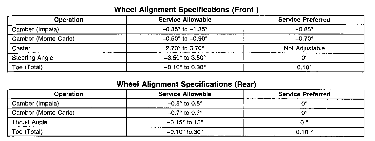 Wheel Alignment Specifications