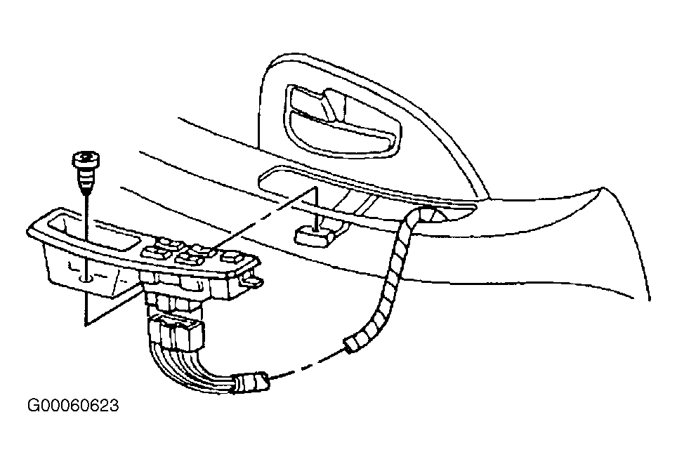 When removing a door trim panel or switch plate, ignition switch must be in OFF position. This eliminates possibility of shorting out switch if a flat-bladed tool, awl or metal object is used to remove switch from harness.