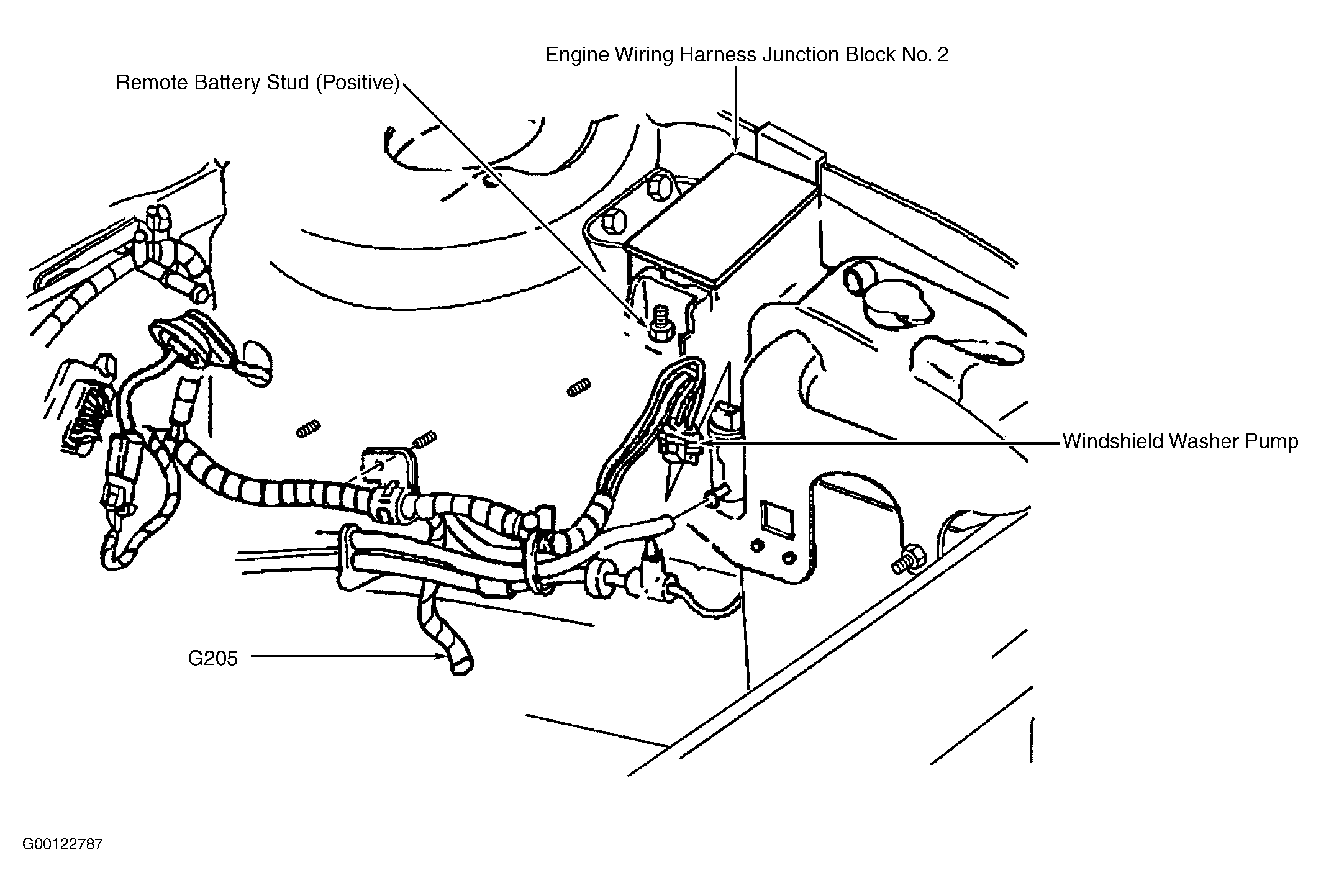 | Engine Wiring Harness Junction Block No. 2 | Forward of left front strut tower. See Figure . |