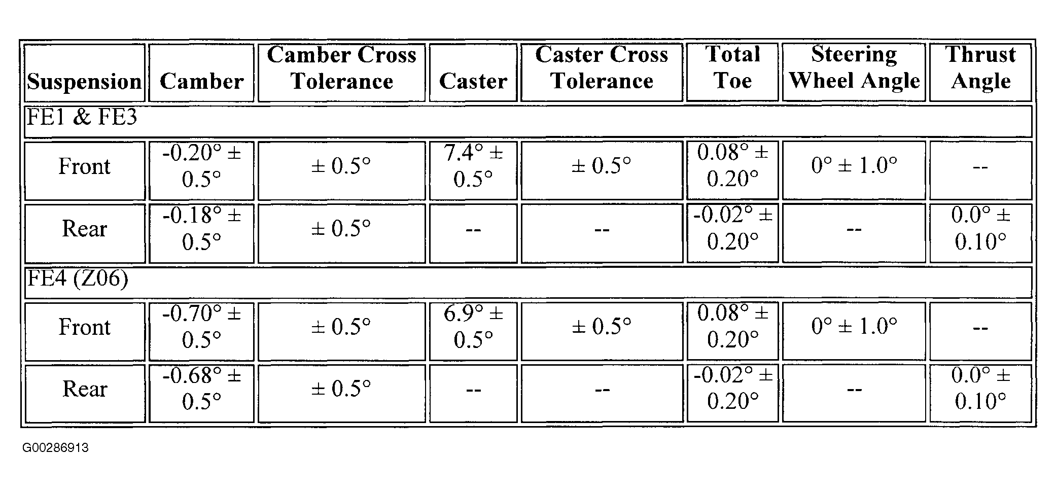 Section 249 (Wheel Alignment Specifications): Specifications