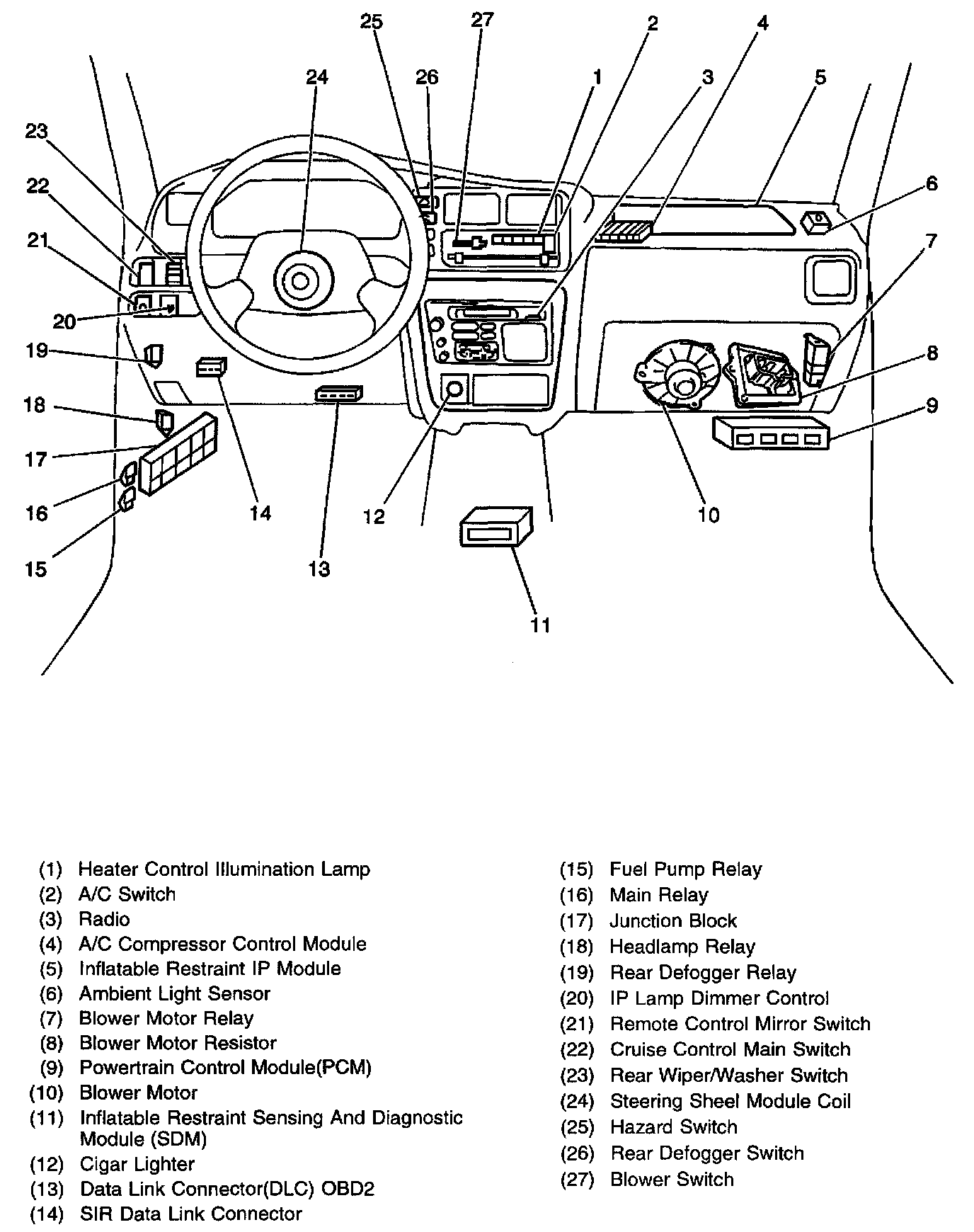 Under the right side of the instrument panel below the blower motor