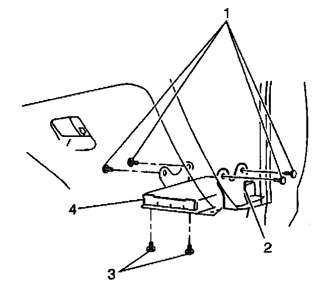 1. Install the PCM bracket (2) underneath the instrument panel.