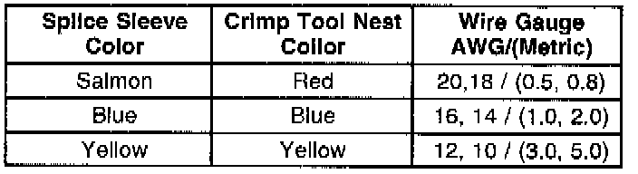Crimp and Seal Splice Table