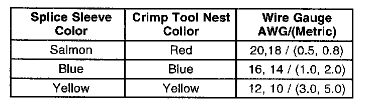 5. Select the proper splice sleeve (2) and the required crimp nest tool, refer to the Crimp and Seal Splice Table.
