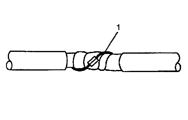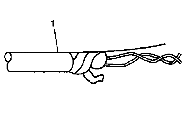 1. Remove the outer jacket (1). Use care not to cut into the drain wire of the mylar tape.