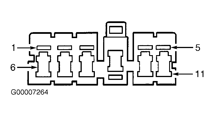 - With master power window switch in UP position, measure voltage between ground and master power window switch harness connector by backprobing terminal No. 11 (Yellow wire). With master power window switch in DOWN position, measure voltage between ground and master power window switch harness connector by backprobing terminal No. 10 (Red wire). See Figure . If battery voltage exists at both terminals, go to next step. If battery voltage does not exist at either terminal, go to step 5 .