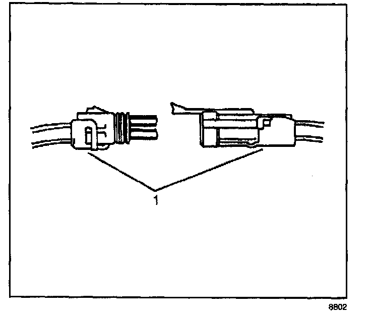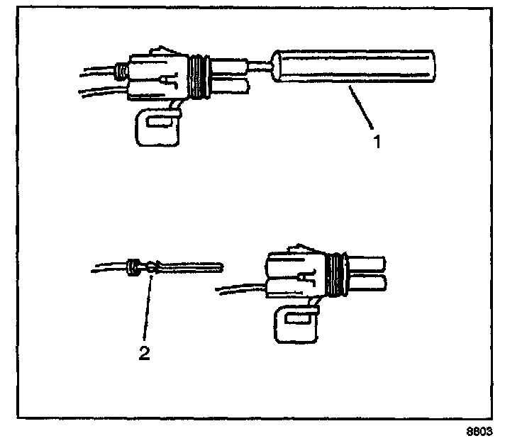 4. Insert the Weather Pack(R) terminal removal tool into the front (mating end) of the connector cavity until it rests on the cavity shoulder (1).