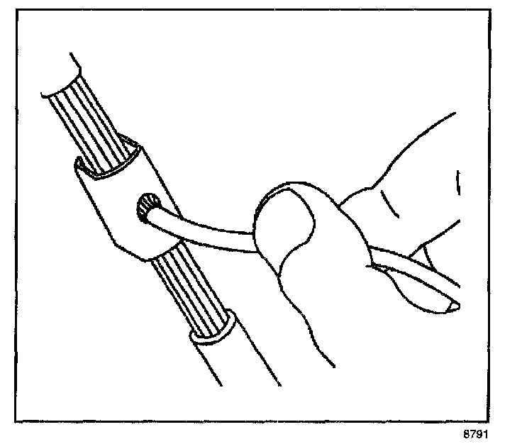 ^ Strip approximately 7.5 mm (5/16 in) of insulation from each wire to be spliced.